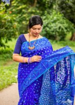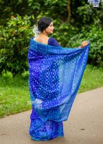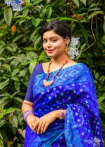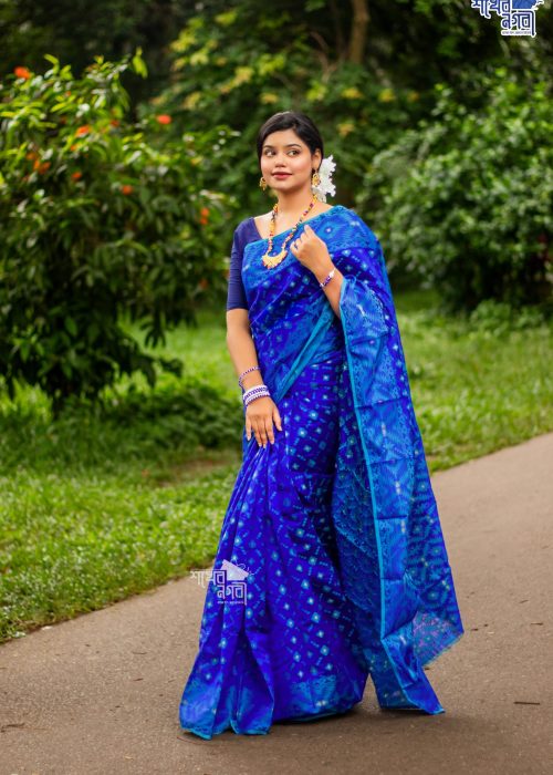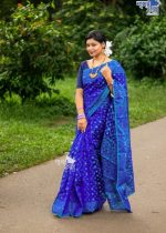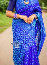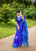 জ্বলন্ত কমলা ও নীল রঙের ঐতিহ্যবাহী শাড়ি ফুলের ডিজাইনে