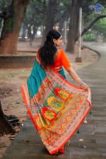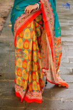 জ্বলন্ত কমলা ও নীল রঙের ঐতিহ্যবাহী শাড়ি ফুলের ডিজাইনে